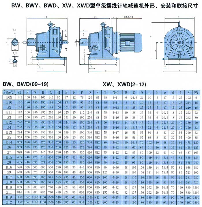 BW、BWY、BWD、XW、XWD型單級擺線針輪減速機