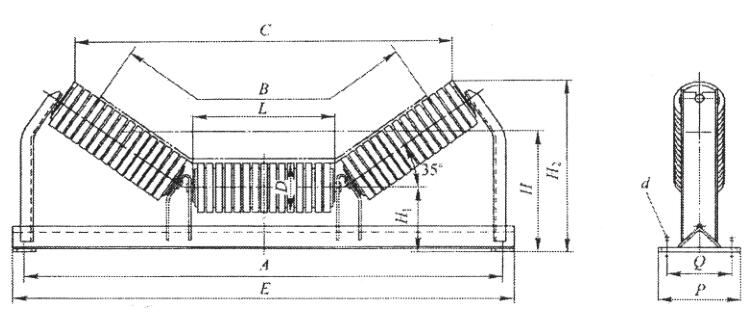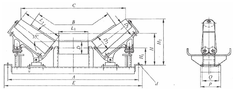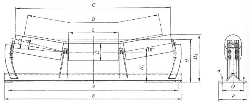 3.8 10°, ±5°transition idler with adjustable trough angle