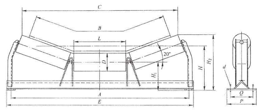 3.9 20°, ±5°transition idler with adjustable trough angle