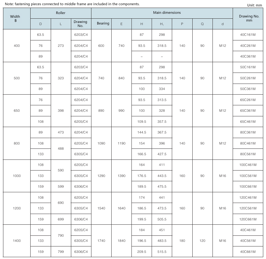 Requirement for drum surface: all are cast rubber surface. Drawing No. with “Y” as postfix refers to right-direction herringbone, with “Z” as postfix refers to left-direction herringbone, with “YZ” as postfix refers to diamond shape (omissible).